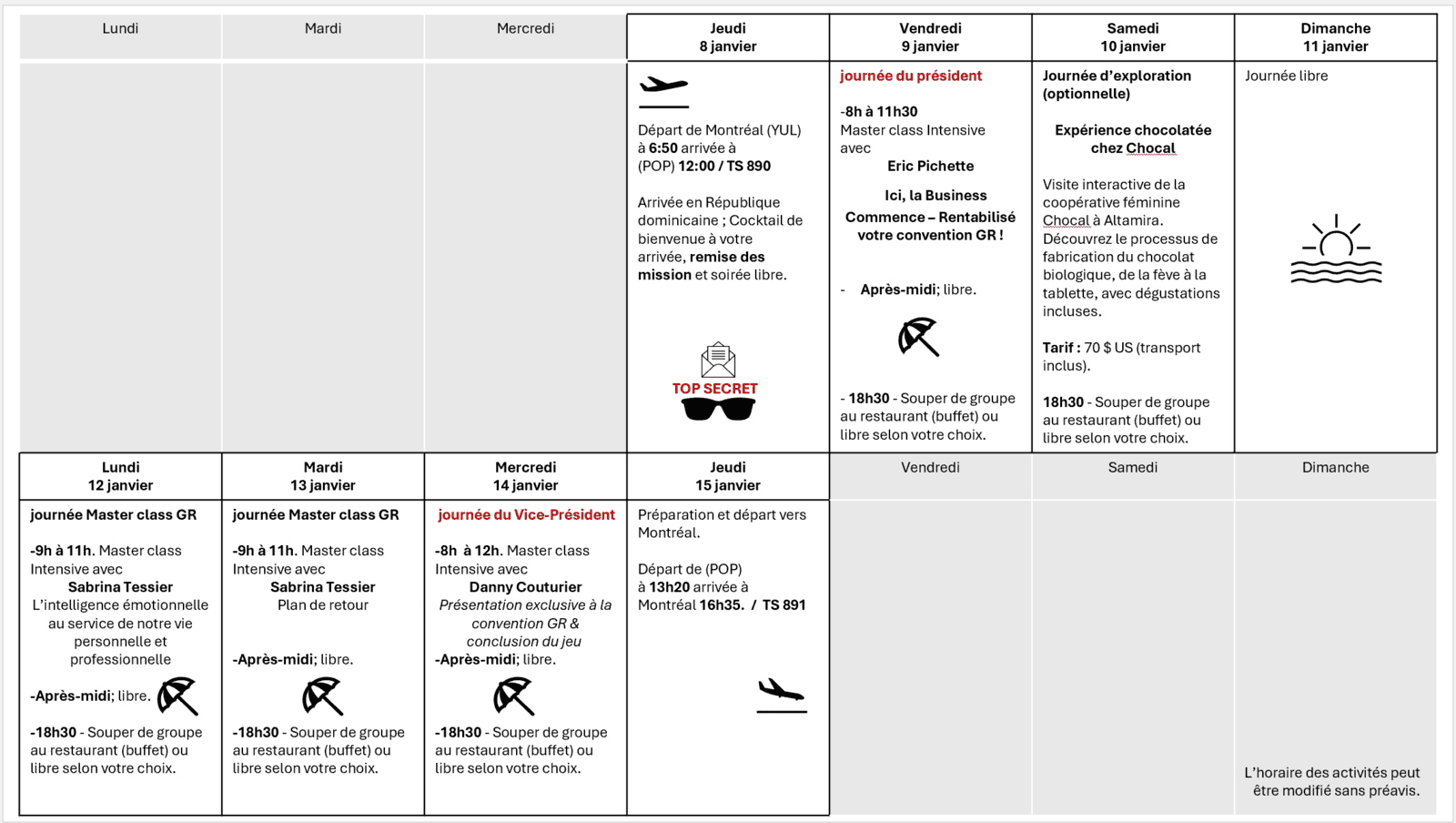 Forfait tout inclus – du 8 au 15 janvier 2026 (8 jours)